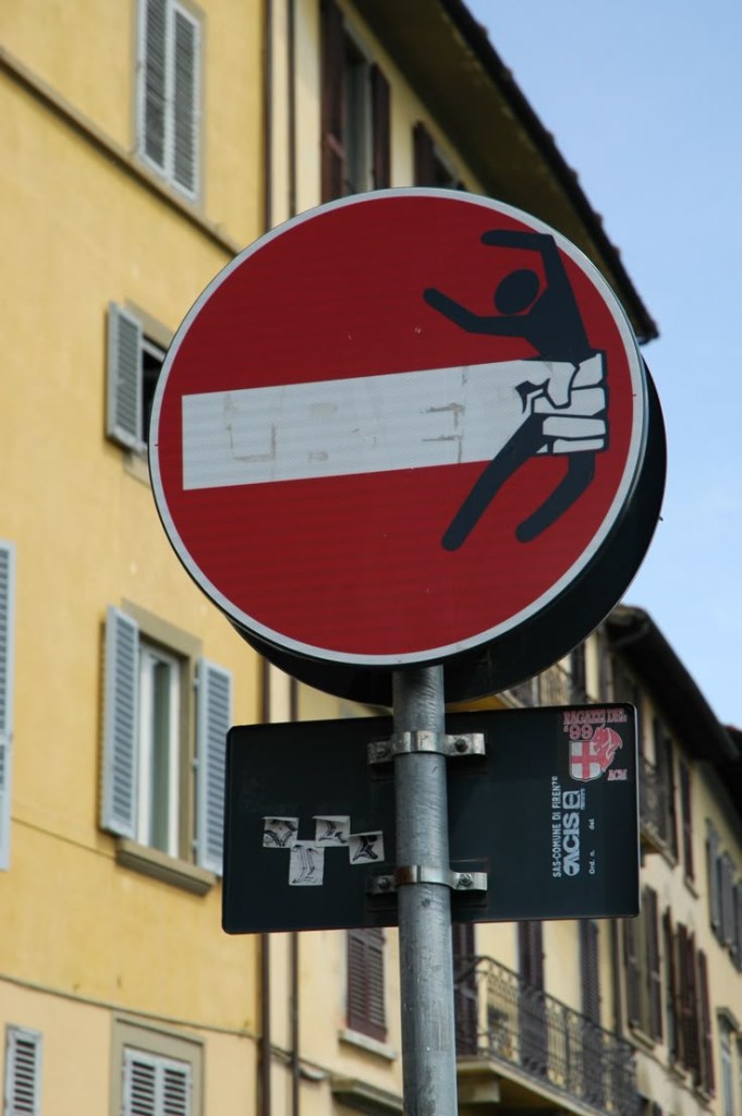Throughout the streets of Firenze, if you take a second to pay attention, you will notice these simple traffic signs with clever subversions all across the city. These belong to the artist Clet Abraham. My Italian tutor Gianluca was the one that first introduced me to his work, and I have been a fan ever since. Clet’s work is a modern disruption in a city of order and renaissance, and goes to show that even within serious architecture, there is room for humor.